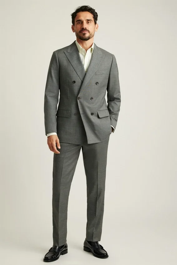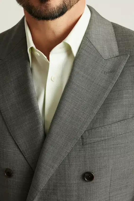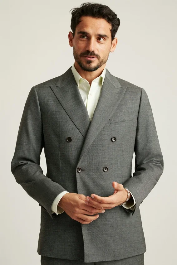 Premium Wool Blazer with Double-Breasted Styling. Italian Wool Fabric for Refined Occasions.