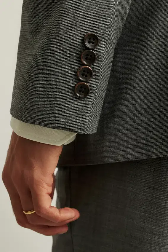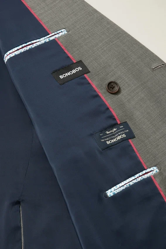 Notch Lapel | Double Vent | Non-Functioning Button Cuffs for Easy Sleeve Tailoring | Fully Lined Interior | Custom Bonobos Print at Interior Welt Pockets