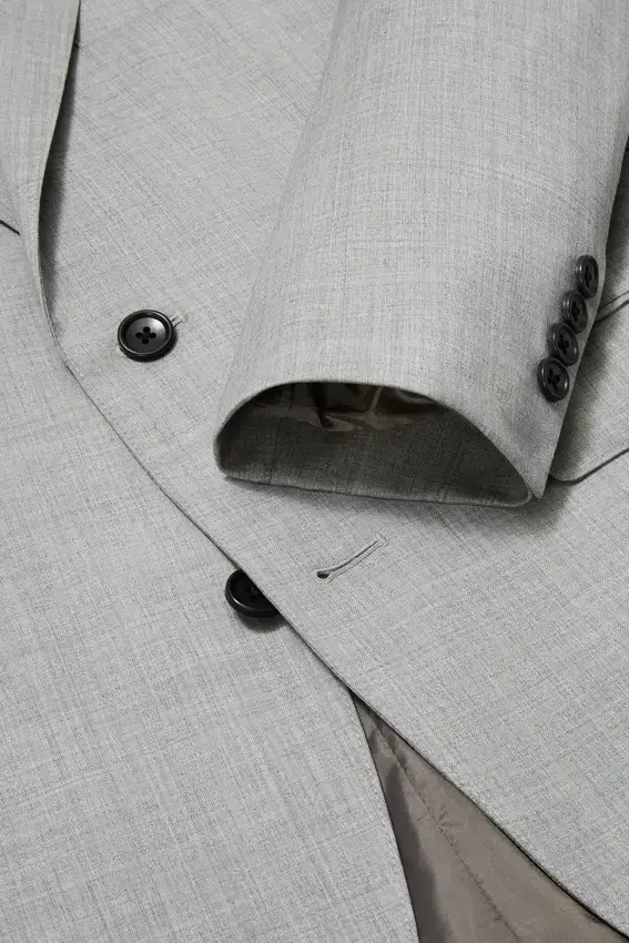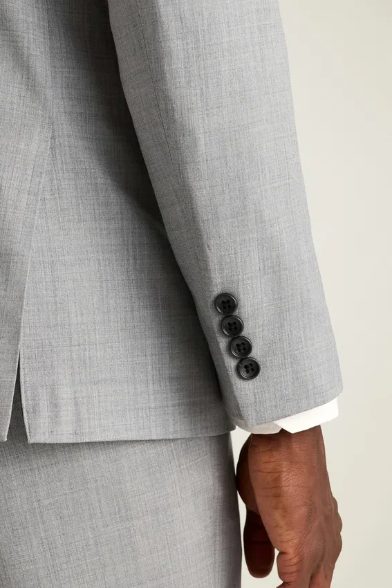 Fully Lined, Lightly Constructed Jacket | All-Season Wool Stretch Fabric | 3-1/4″ Lapel | Flap Pockets | Two-Button Single-Breasted | Fully Lined Interior | Sleeve Lining | Non-Functional Buttons at Cuffs | Double Vent | Interior Passport Pocket