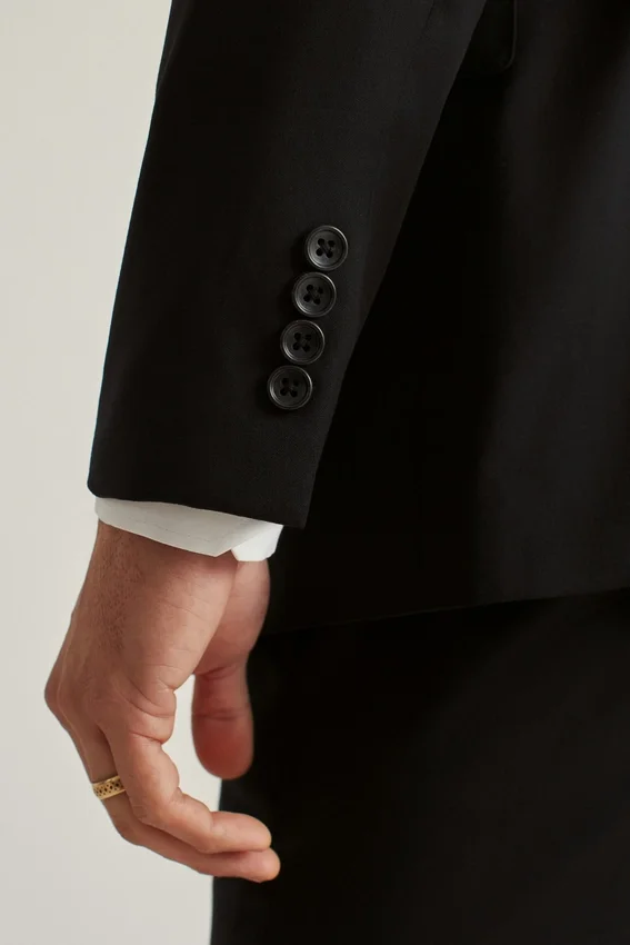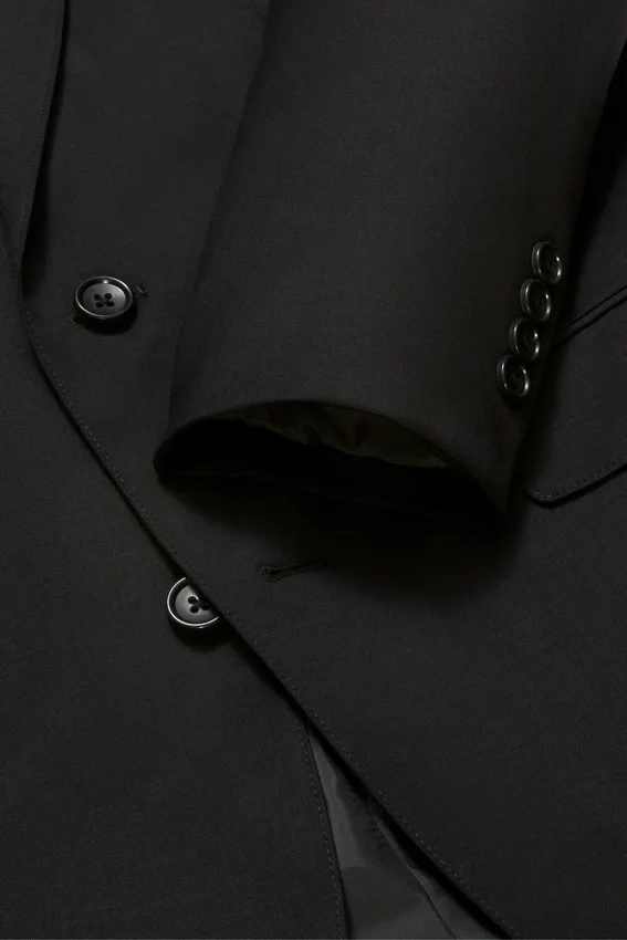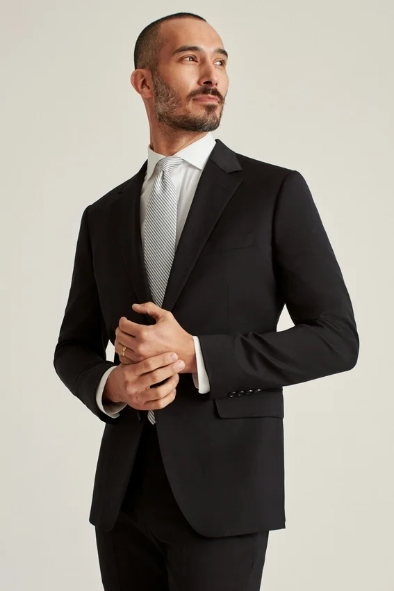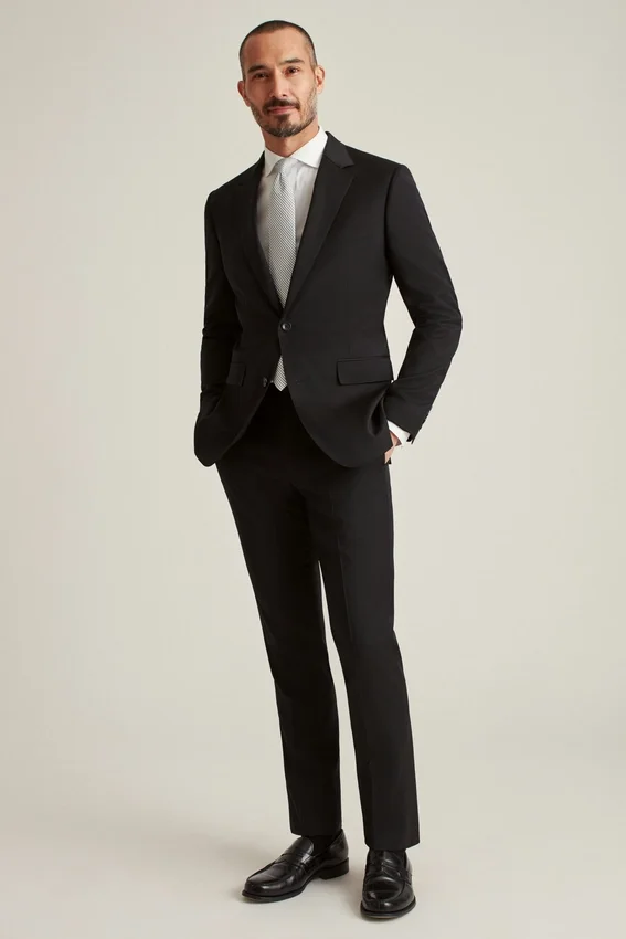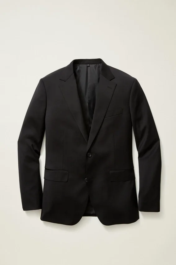 Fully Lined, Lightly Constructed Jacket | All-Season Wool Stretch Fabric | 3-1/4″ Lapel | Flap Pockets | Two-Button Single-Breasted | Fully Lined Interior | Sleeve Lining | Non-Functional Buttons at Cuffs | Double Vent | Interior Passport Pocket