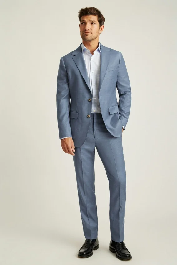 Notch Lapel| Flap Pockets | Two-Button Single-Breasted | Fully Lined Interior | Sleeve Lining | Non Functional Buttons at Cuff | Double Vent | Interior Pockets and Locker Loop