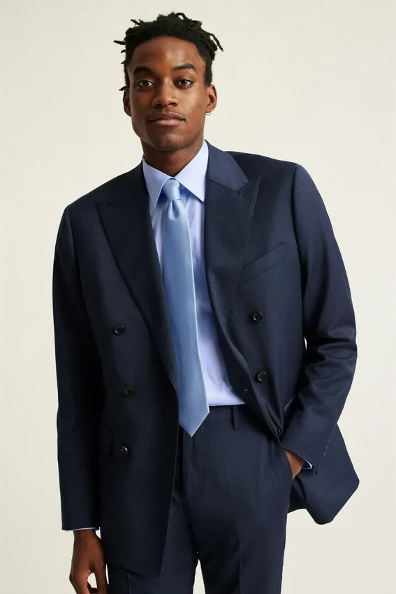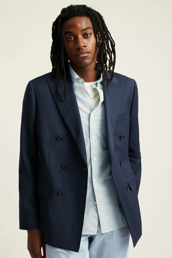 Structured Blazer in Premium Wool Fabric. Double-Breasted Styling for Fall and Winter Occasions.