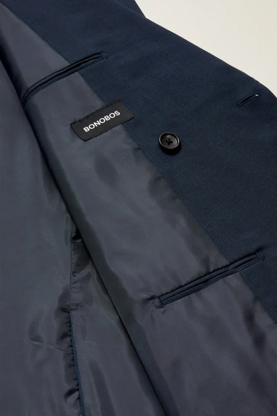 Notch Lapel | Double Vent | Non-Functioning Button Cuffs for Easy Sleeve Tailoring | Fully Lined Interior | Custom Bonobos Print at Interior Welt Pockets