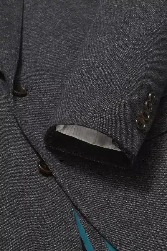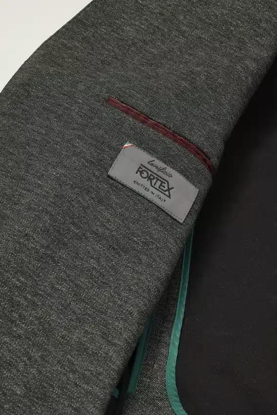 Minimally Lined, All-Season Blazer Made in an Elevated Knit Melange Fabric from Lanificio Fortex | 3-1/4″ Lapel Width | Flap Pockets | Two-Button Single Breasted | Unlined Interior with Shoulder Support and Binding at Seams | Sleeve Lining | Non-Functional Buttons at Cuff | Double Vent | Light Construction | Interior Welt Pockets