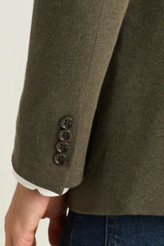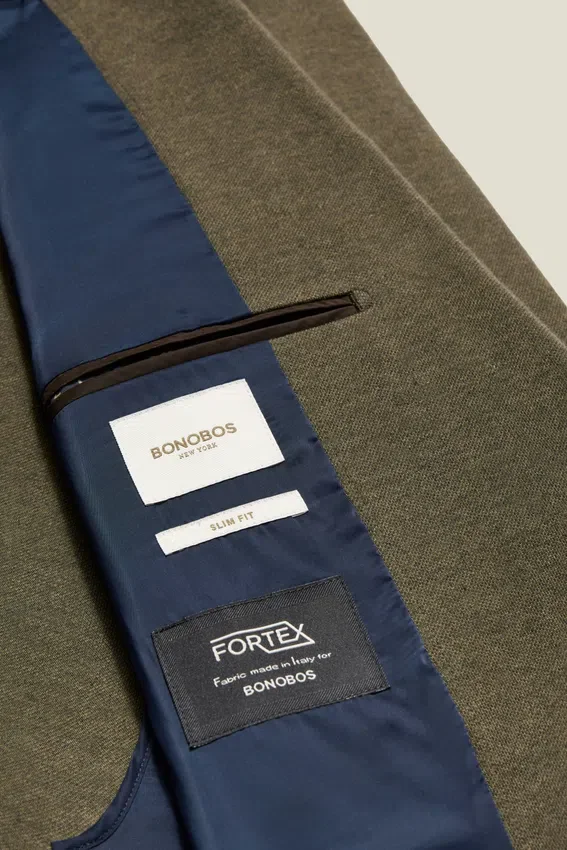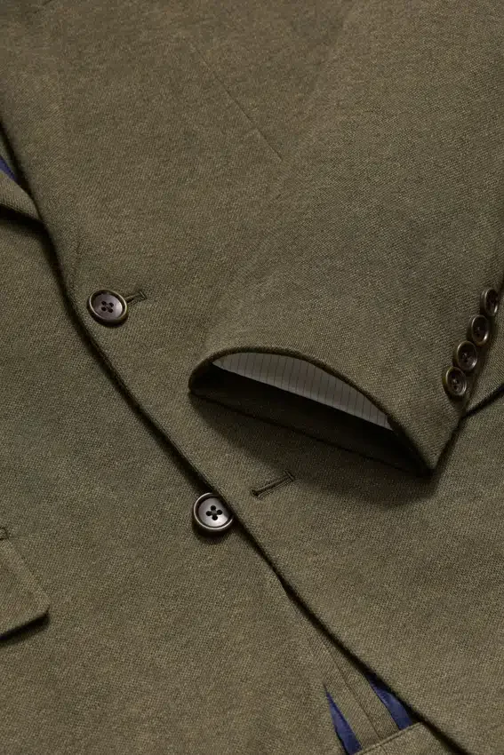 3-1/4″ Lapel Width | Flap Pockets | Two-Button Single Breasted | Partially Lined | Sleeve Lining | Non-Functional Buttons at Cuff | Double Vent | Light Construction | Interior Welt Pockets