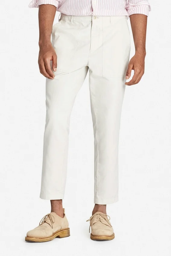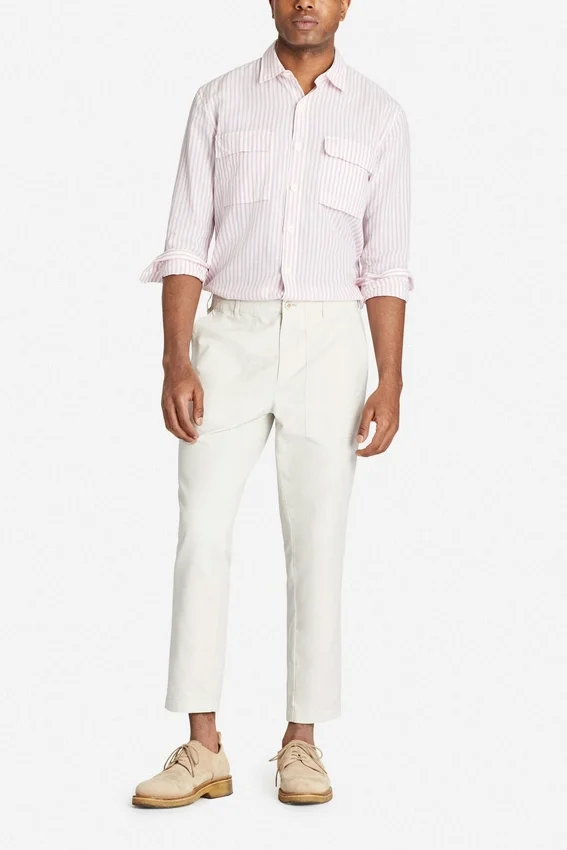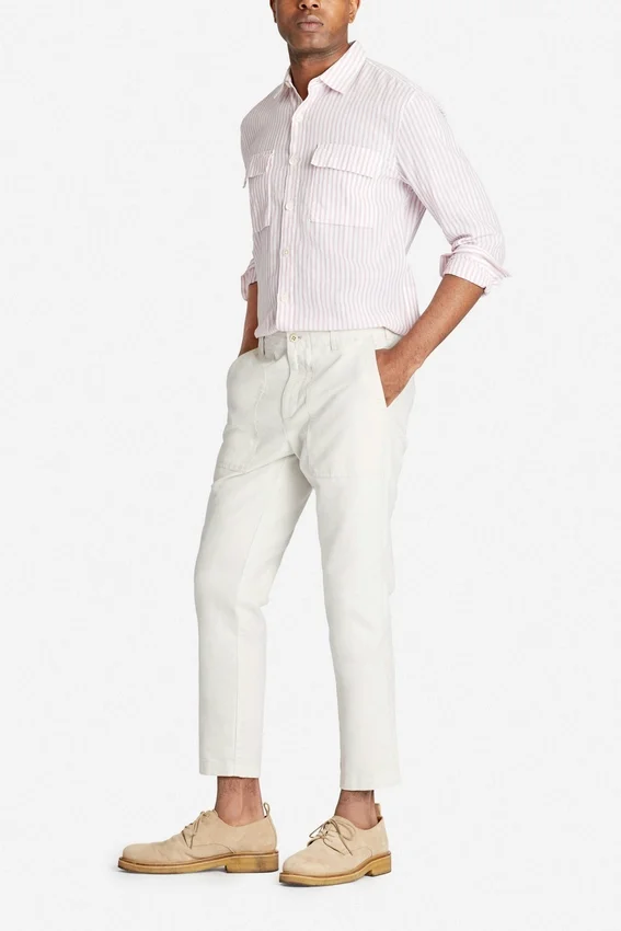 Garment Dyed | Interior Drawcord at Center Front | Zip Fly with Button at Cf | Patch Fatigue Pockets | Back Welt Pockets with Buttons