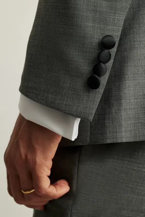 Shawl Collar | Single Button at Front | Contrast Satin Lapel | Flap Pockets | Fully Lined Interior | Back Vents | Satin Covered Buttons