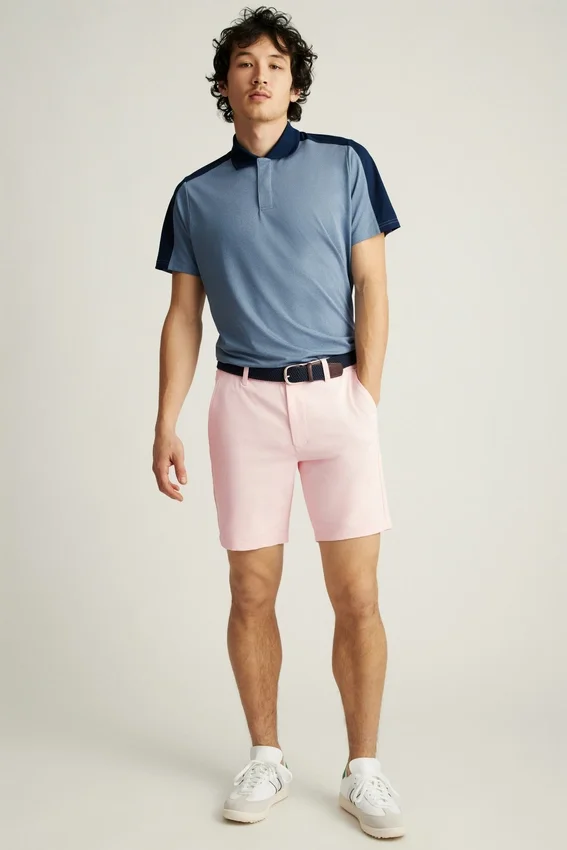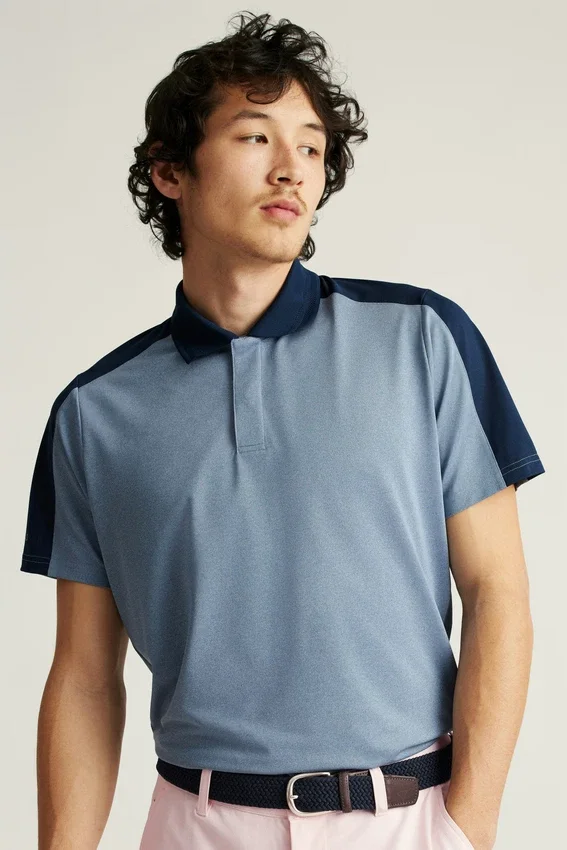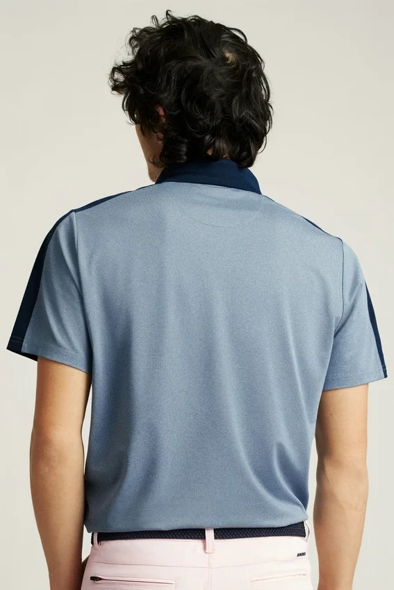 Lightweight Pique Fabric with Upf Protection | Moisture Wicking | Quick Drying | Anti-Odor Functions | Color-Blocked Contrast Panels on the Shoulder Panels | Herringbone Tipping on Knit Collar | Hidden Placket at Center Front.