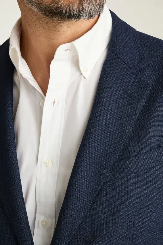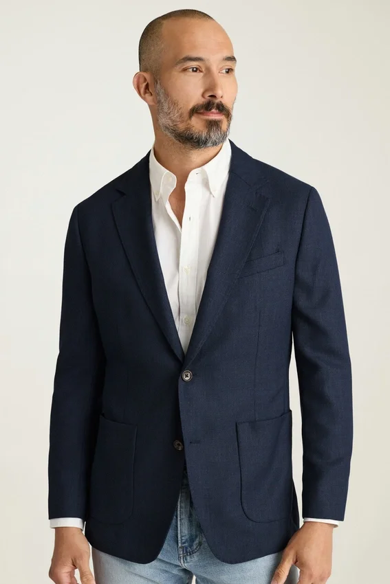 Lightly Constructed and Minimally Lined, This Lightweight Blazer is Made from a Breathable Wool Hopsack from Marzotto. | 3-1/4″ Lapel | Patch Pockets | Two-Button Single-Breasted | Unlined Interior with Shoulder Support and Binding at Seams | Sleeve Lining | Non-Functional Buttons at Cuffs | Double Vent | Interior Welt Pockets